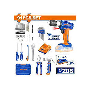 021 WDT1B90-4 Set De Herramientas 91 Piezas Con Taladro Atornillador Percutor Wadfow + Bateria 20 V